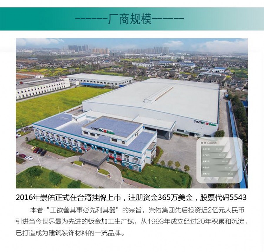 介紹:鋁天花、方板天花、微孔天花、鋼板天花、工程天花,嵌入式暗架系統和放置式明架系統,易拆卸,防塵隔音,崇佑品牌,行業知名品牌。